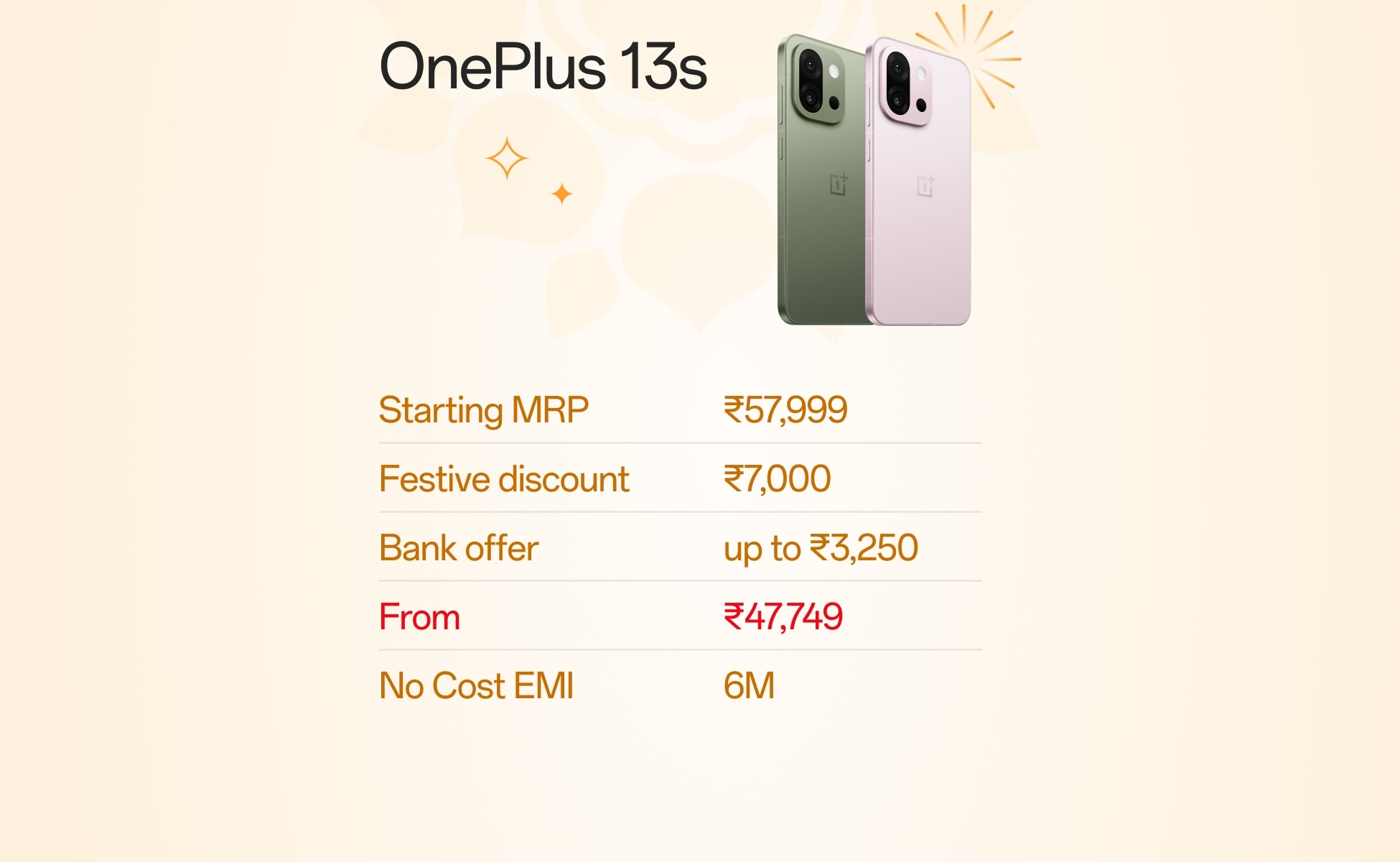 OnePlus 13S – ₹54,999 से घटकर ₹47,749
