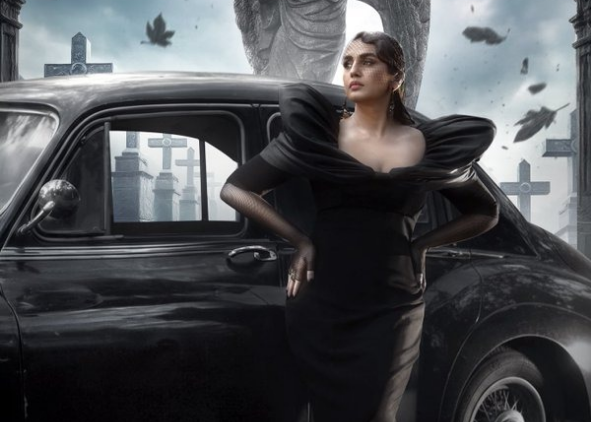 पोस्टर का बैकग्राउंड भी काफी डार्क और रहस्यमयी है, जहां एक परी की मूर्ति और कब्रिस्तान दिखाई दे रहा है, जो पूरे माहौल को डरावना और इंटेंस बना देता है।