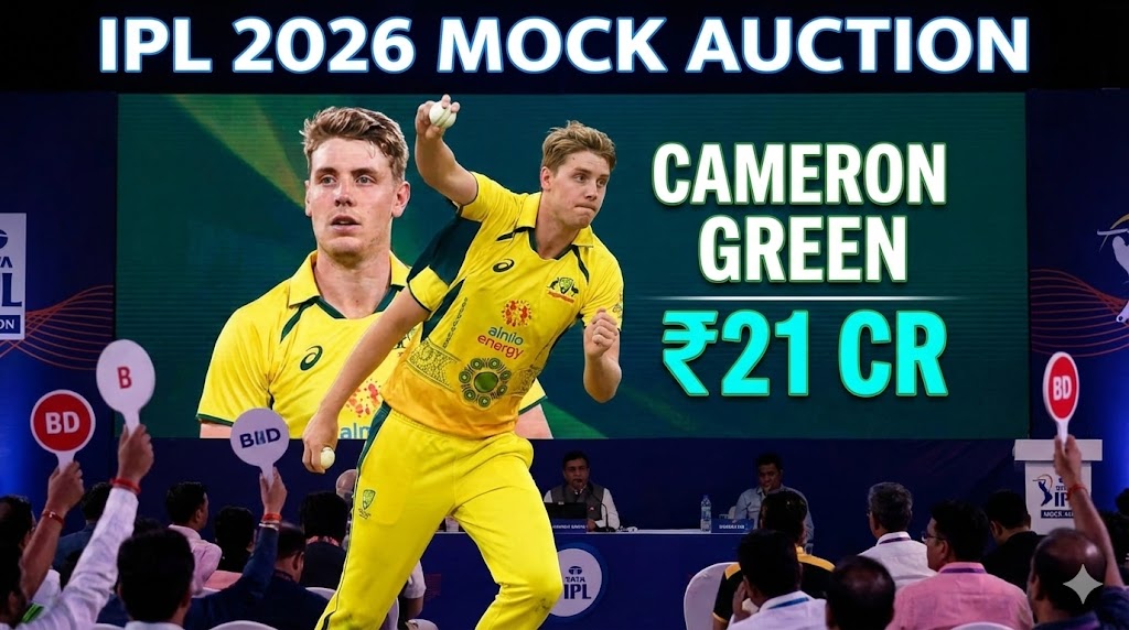 IPL 2026 Mock Auction Cameron Green ₹21 Cr: आईपीएल 2026 की मिनी नीलामी अब ज्यादा दूर नहीं है। 16 दिसंबर को अबू धाबी में होने वाले इस ऑक्शन में कुल 359 खिलाड़ियों की किस्मत का फैसला होगा।