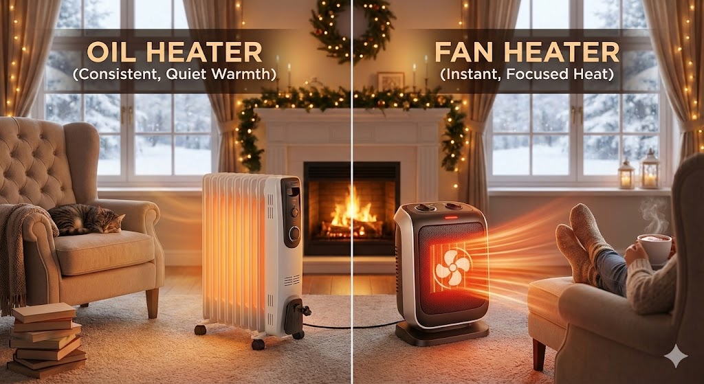 Oil Heater Vs Fan Heater: सर्दियों में घर या कमरे को जल्दी गर्म करने के लिए लोग सबसे पहले हीटर खरीदने का सोचते हैं। बाजार में सबसे ज़्यादा खरीदे जाने वाले दो विकल्प हैं — Oil Heater और Fan Heater।
