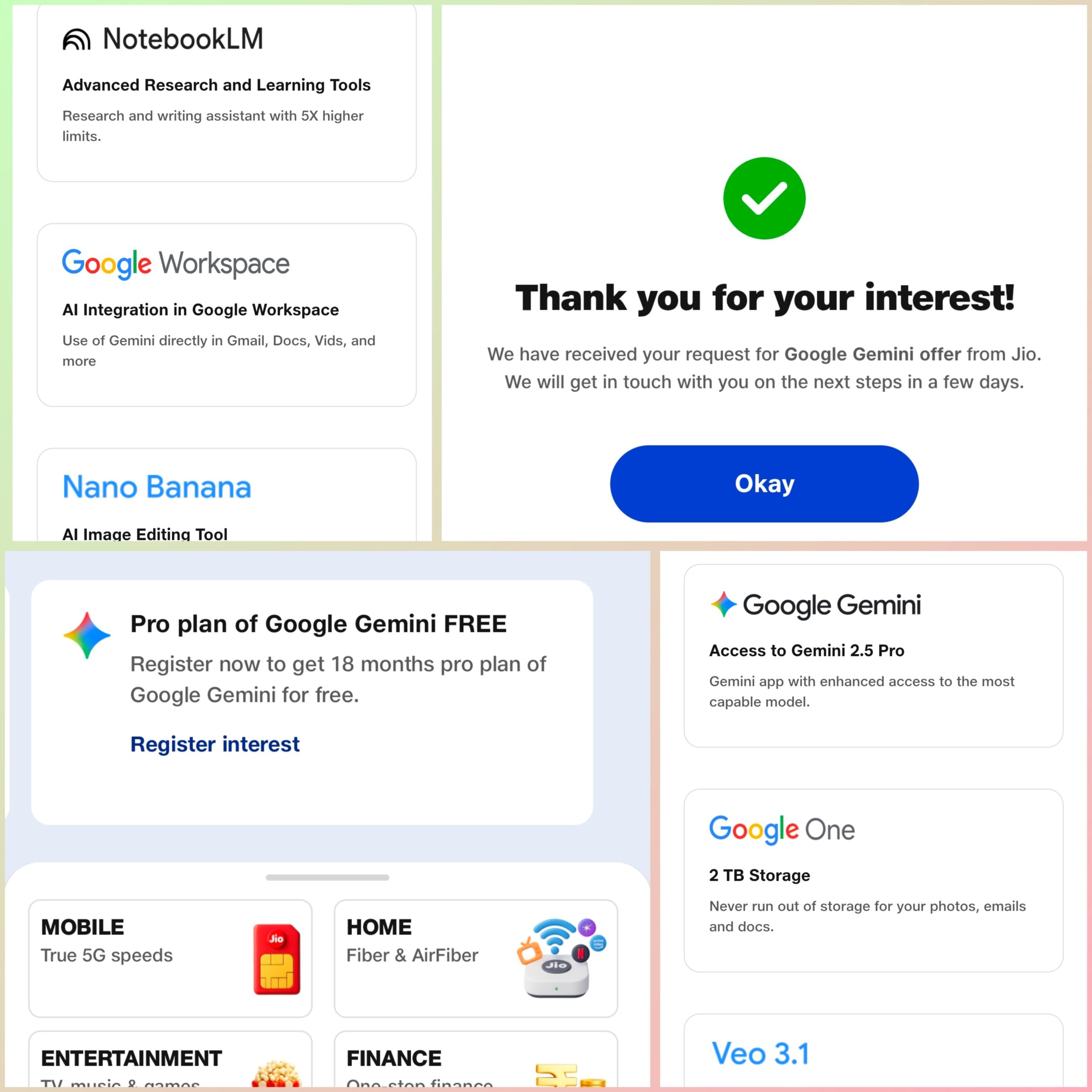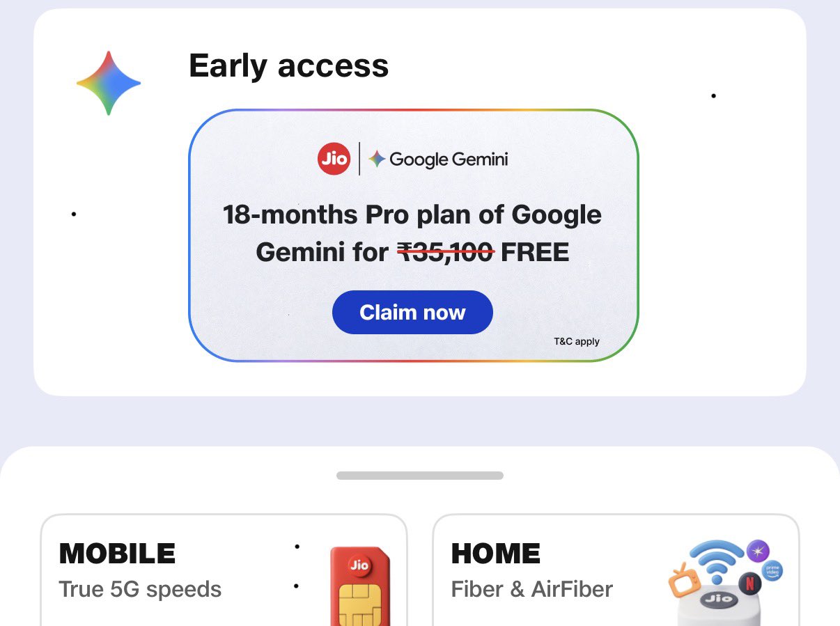 - Jio यूज़र्स के लिए बड़ी खुशखबरी: मिलेगा ₹35,100 वाला Google AI Pro सब्सक्रिप्शन बिल्कुल फ्री, सिर्फ इतनी-सी शर्त!